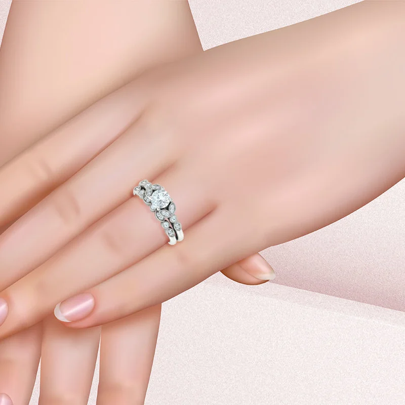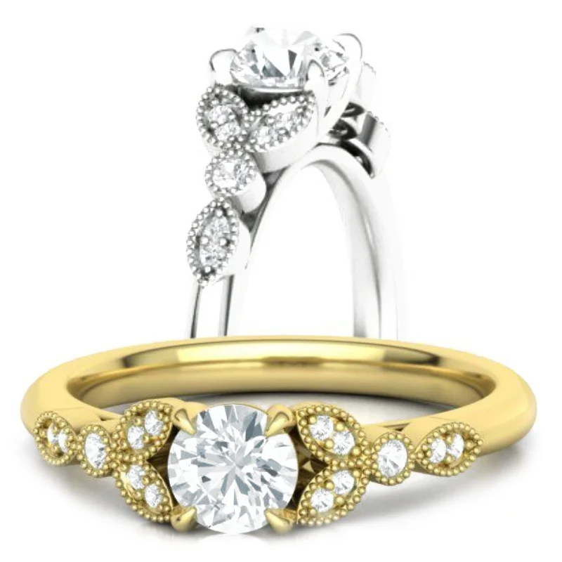 טבעת אירוסין פרח וינטג' עדינה עם אופציה לטבעת תואמת