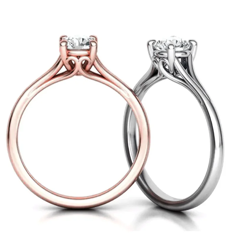 טבעת יהלומים סוליטר מפוצלת עדינה ואלגנטית