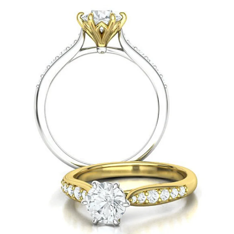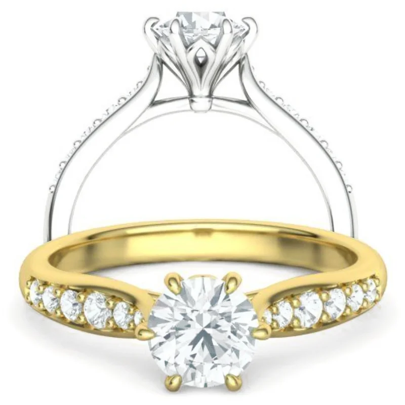 טבעת אירוסין סוליטר מומלצת עם יהלומי צד מדורגים וראש גבוה בעיצוב כתר