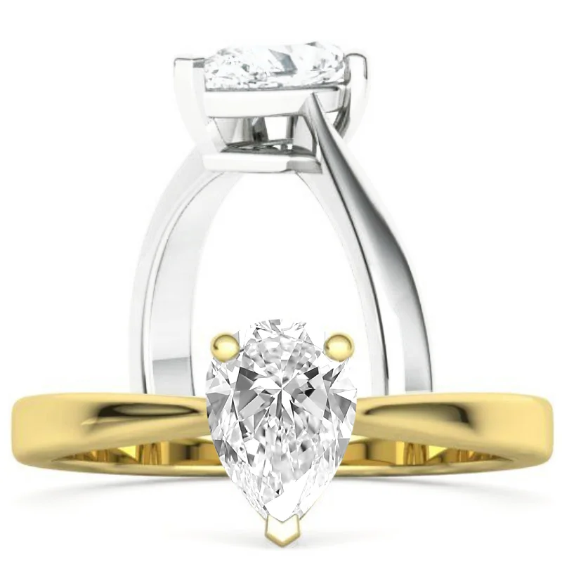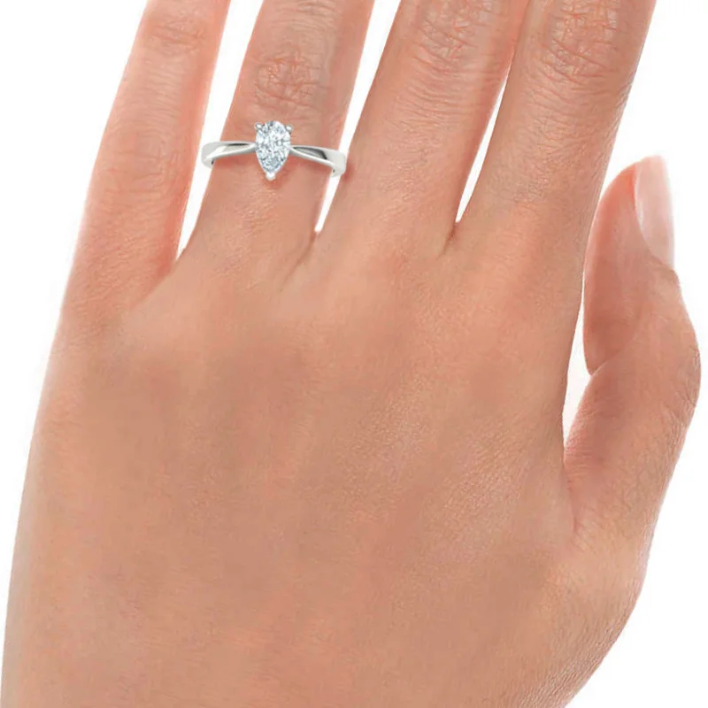 טבעת אירוסין יהלום טיפה סוליטר קלאסית עדינה ואופנתית