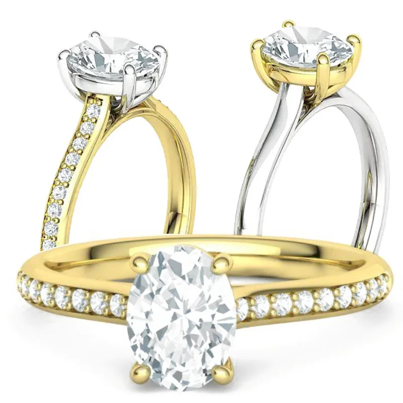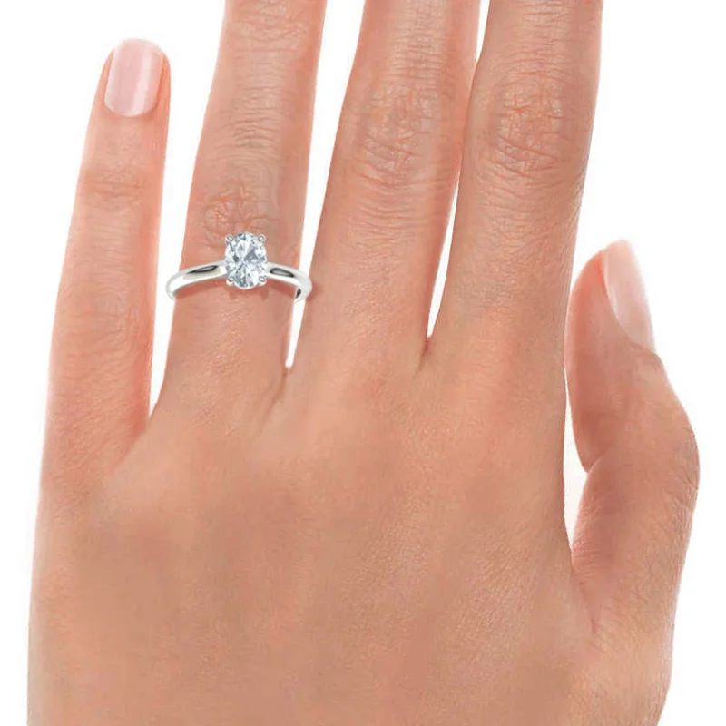 טבעת יהלום אובלית סוליטר קלאסית עדינה וסולידית