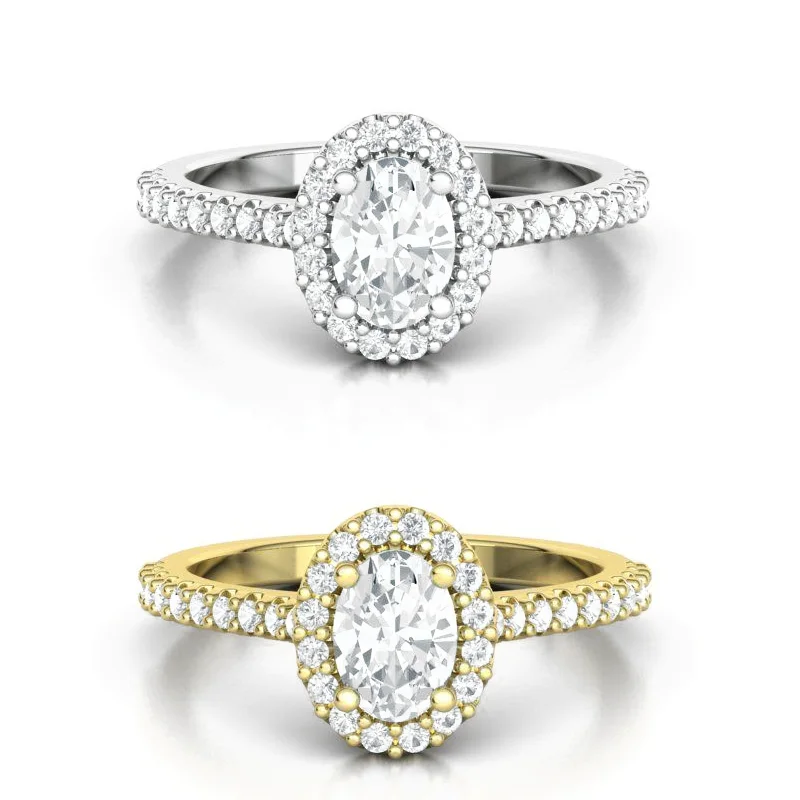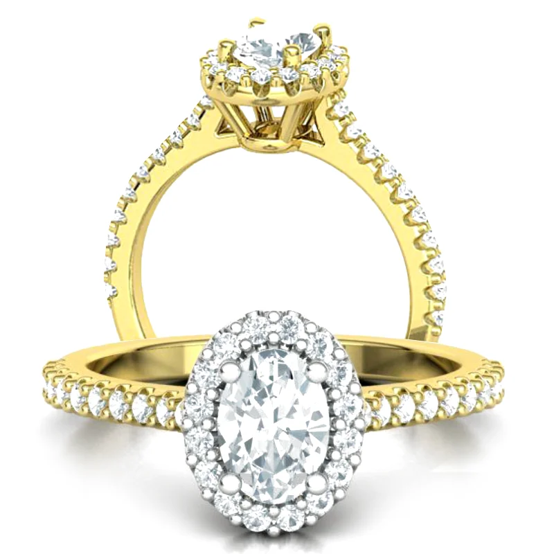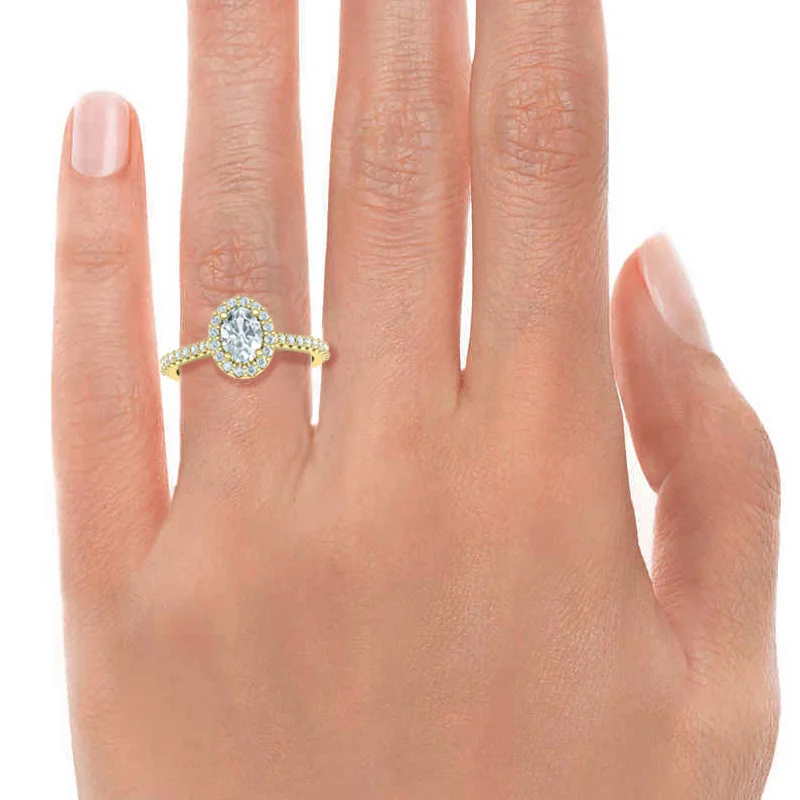 טבעת אירוסין היילו אובל שורת יהלומים מסביב ליהלום המרכזי