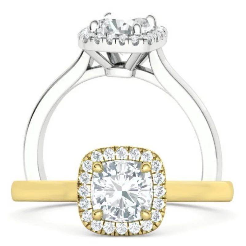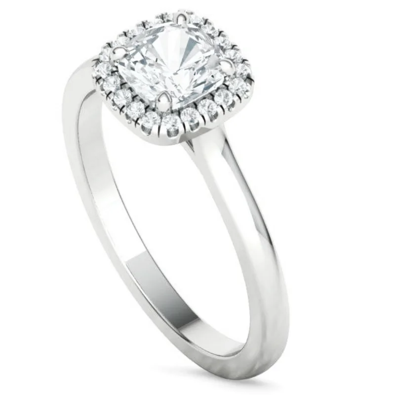 טבעת יהלום קושן היילו (halo) שורת יהלומים מסביב לאבן המרכזית