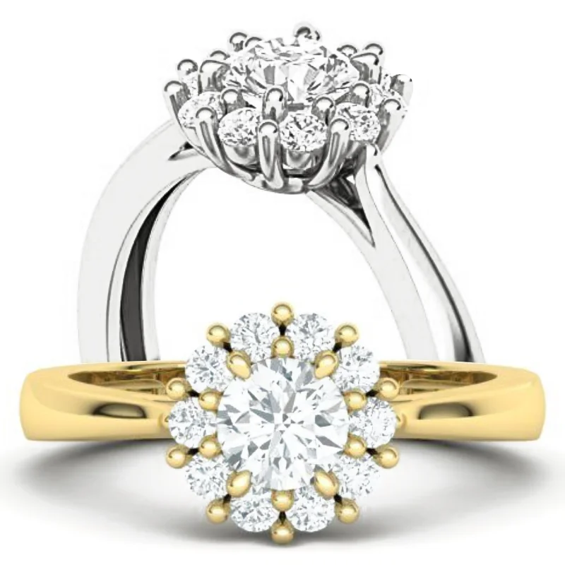 גודל היהלום המרכזי בתמונה חצי קראט בקירוב 5 מ"מ (אפשר לשנות את חיתוך וגודל האבן המרכזית)