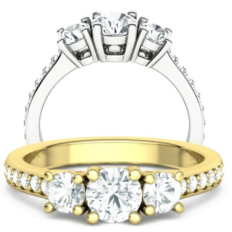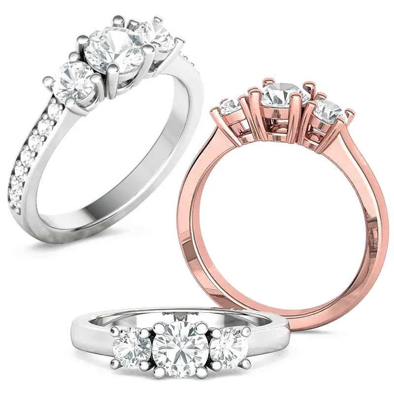 טבעת שלושה יהלומים עבה חלקה או עם יהלומי צד