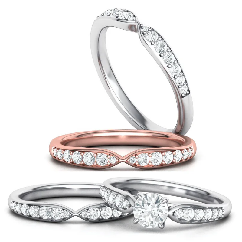טבעת יהלום סט אירוסין בעיצוב סוליטר עם שיבוץ מדורג