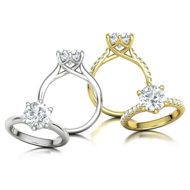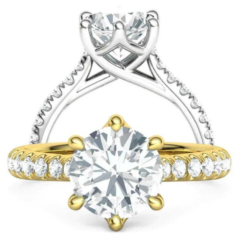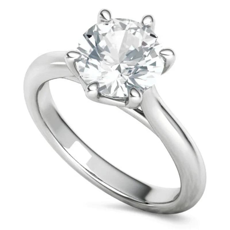 טבעת יהלום סוליטר קלאסית 6 שיניים עם גוף משתלב