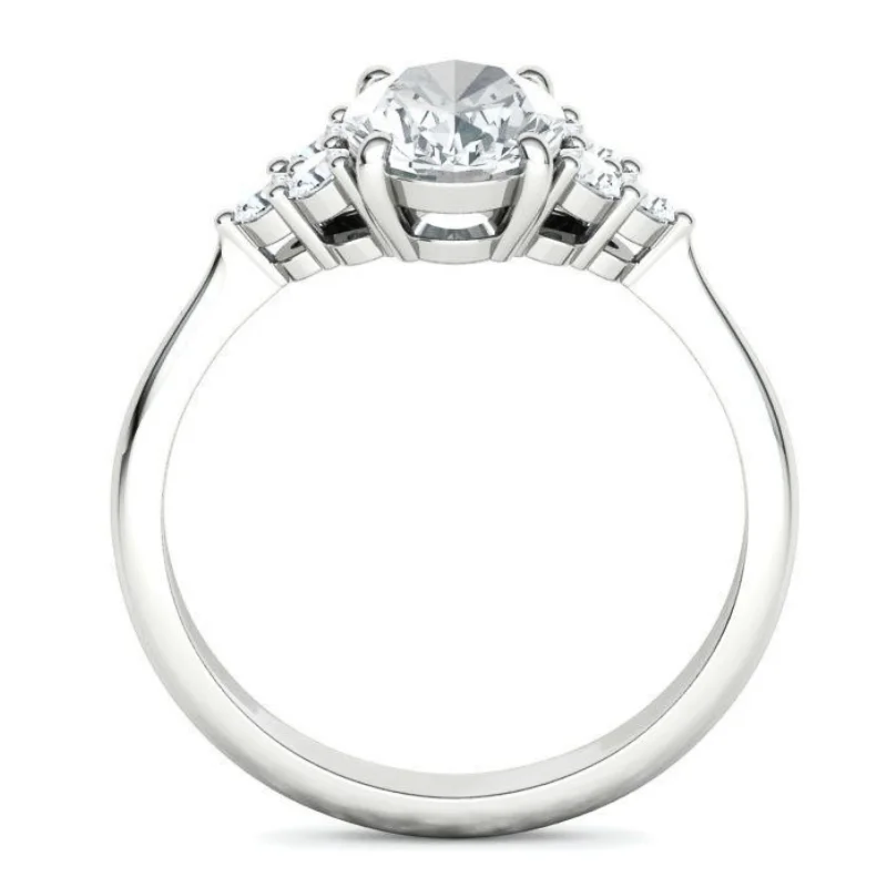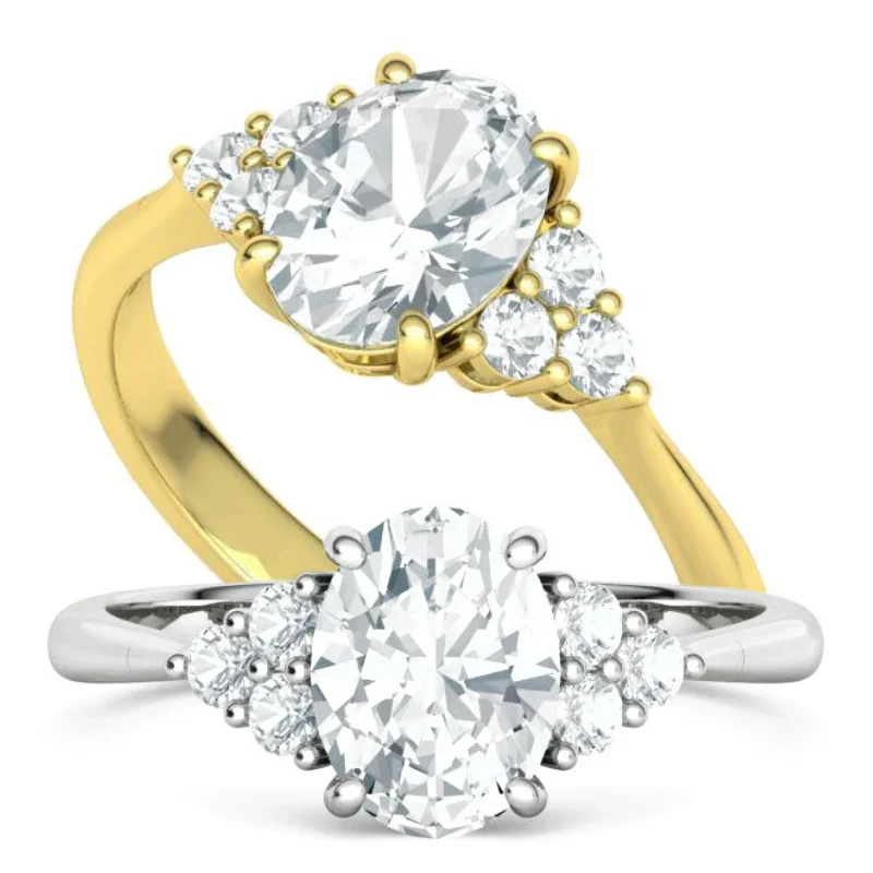 טבעת יהלום אובל וינטאג' סוליטר קלאסית עם 3 יהלומים יהלומים מכל צד
