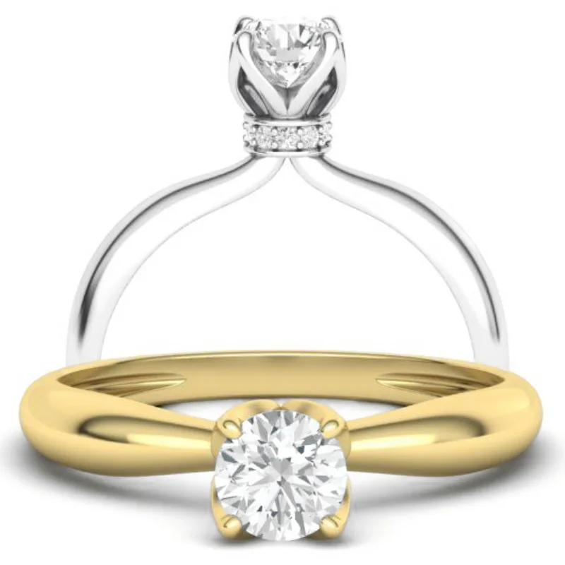 טבעת סוליטר יהלום עגול עם שורת יהלומים צדדיים מתחת לאבן המרכזית (נקרא הילה נסתרת)