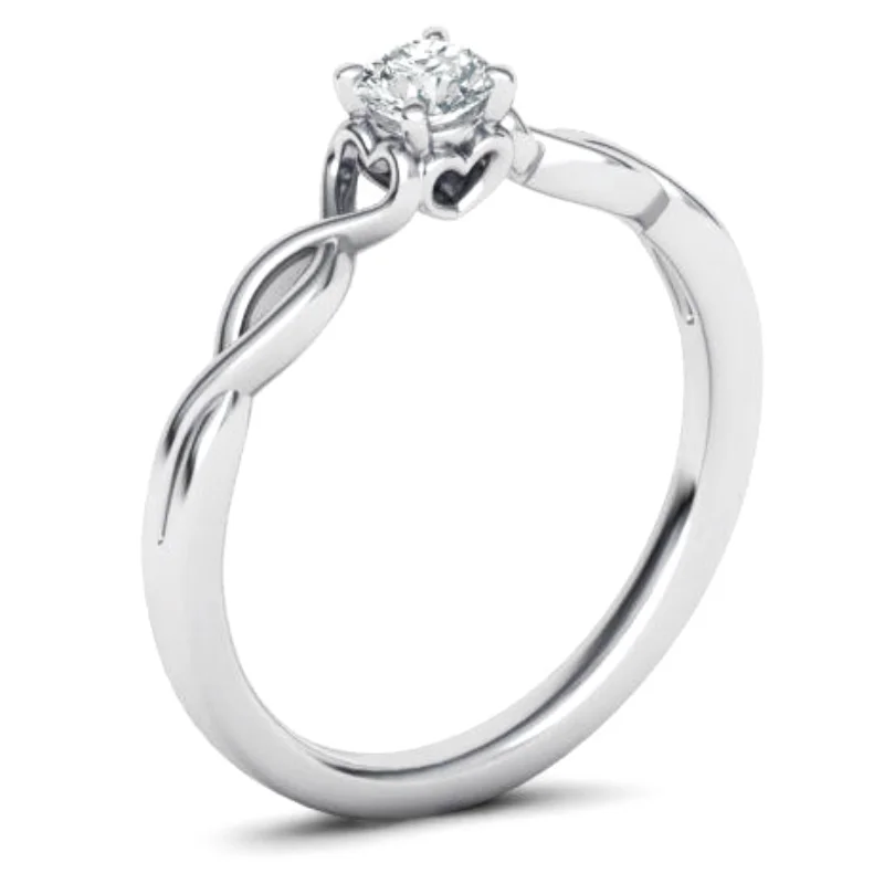 טבעת אירוסין יהלום עגול מעוצבת עם צורת לב מתחת ליהלום המרכזי