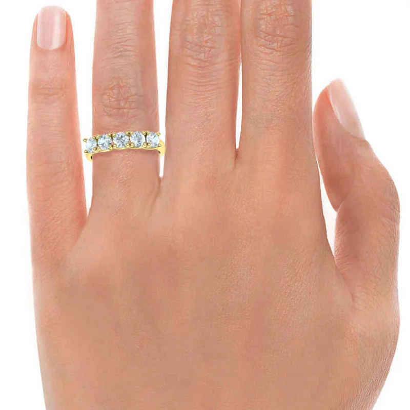 טבעת 5 יהלומים שורה רבע קראט כל אחד