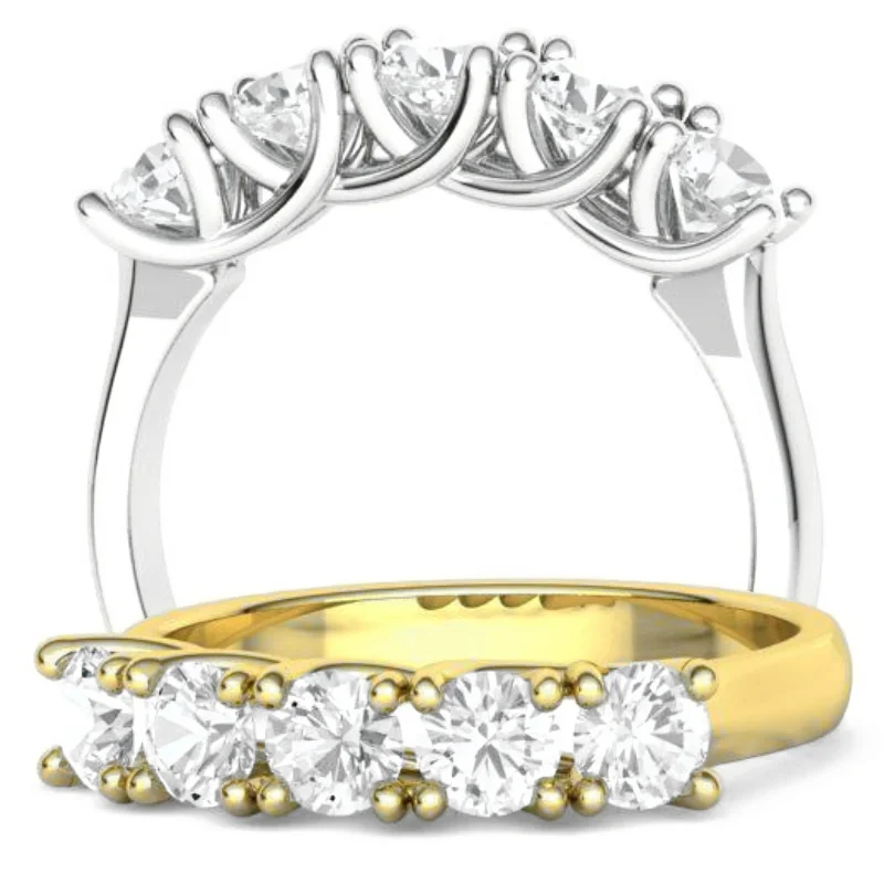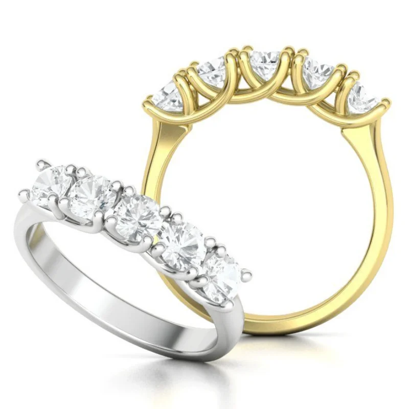 טבעת 5 יהלומים שורה