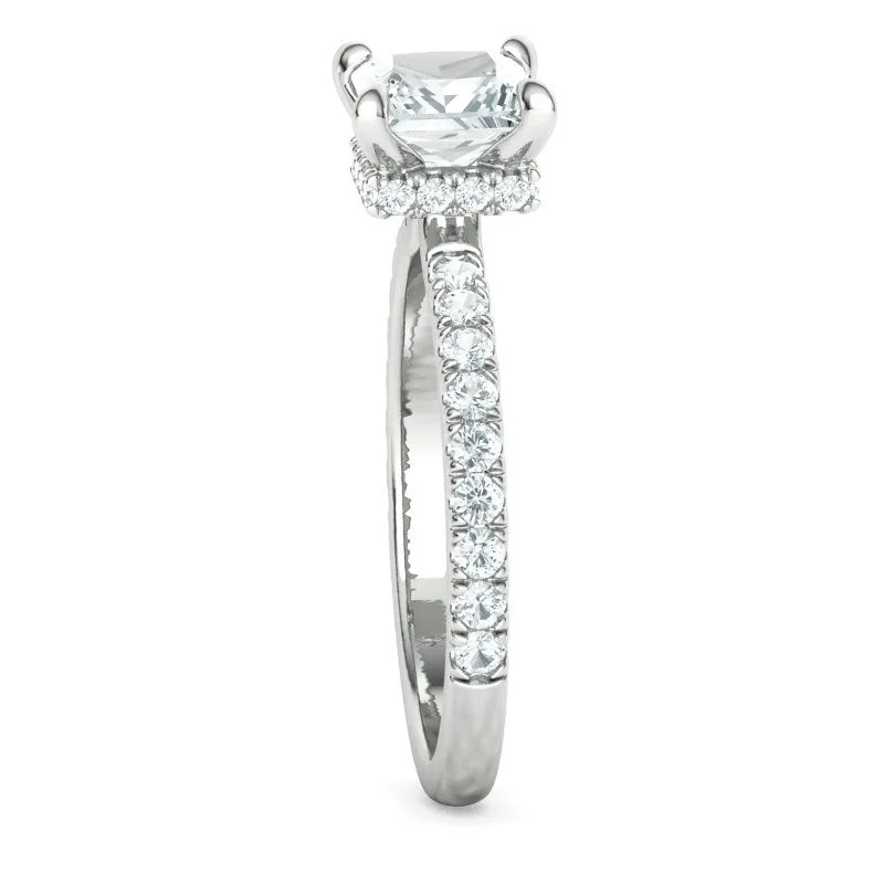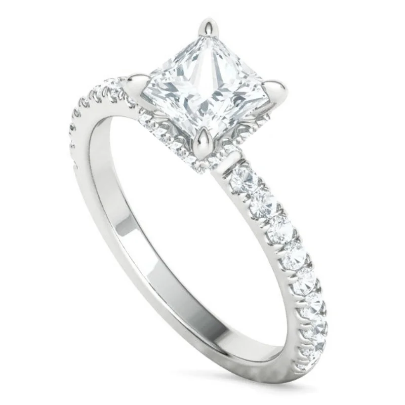טבעת אירוסין פרינסס מרובע עם שורת יהלומים מתחת ליהלום המרכזי