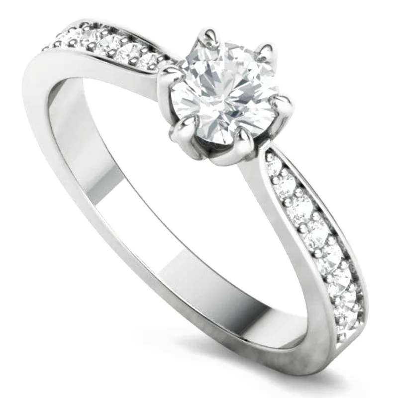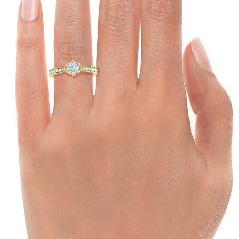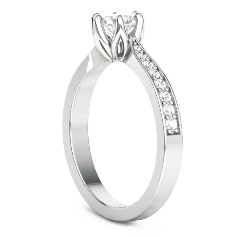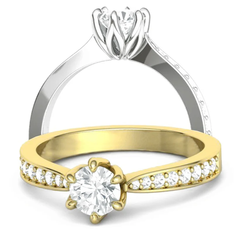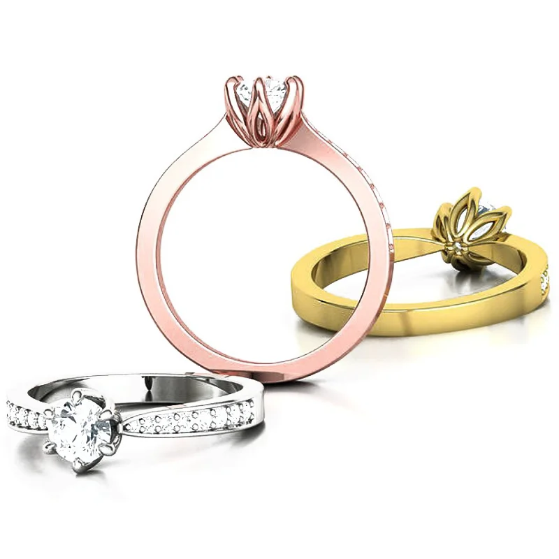 טבעת פרח יהלום סוליטר קלאסית ראש בעיצוב פרח לוטוס שיבוץ 6 שיניים, וגוף מדורג שהולך ונהיה צר לקראת ראש הטבעת