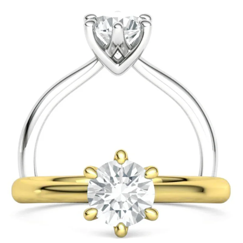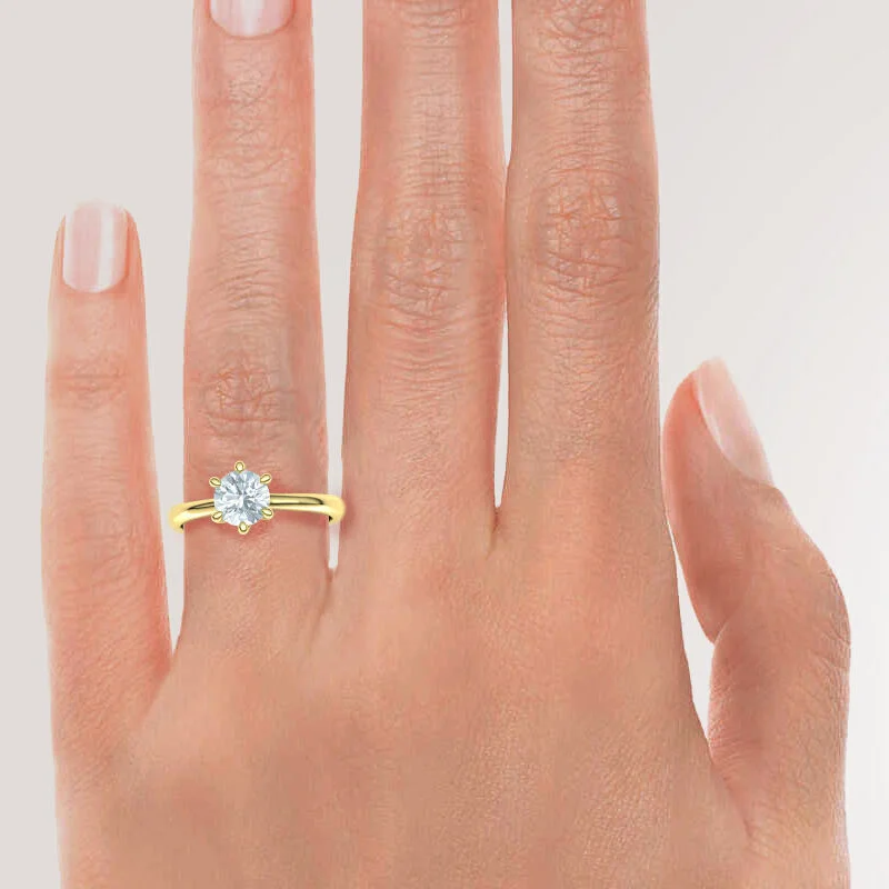 טבעת אירוסין עדינה סוליטר יהלום עגול עם עיצוב מיוחד בראש הטבעת