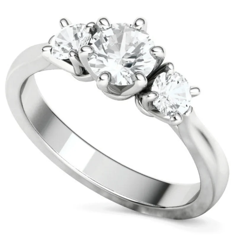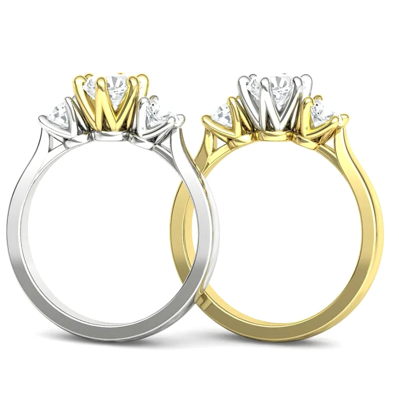 טבעת 3 אבנים משובצת יהלומים – טבעת אירוסין שלוש יהלומים עיצוב כתר שאפשר להזמין ב-2 גווני זהב