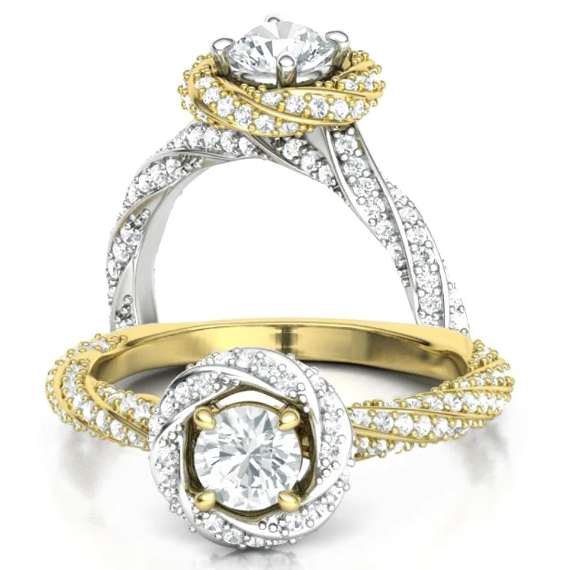 טבעת יהלום מעוצבת שיבוץ פרחוני מפותל
