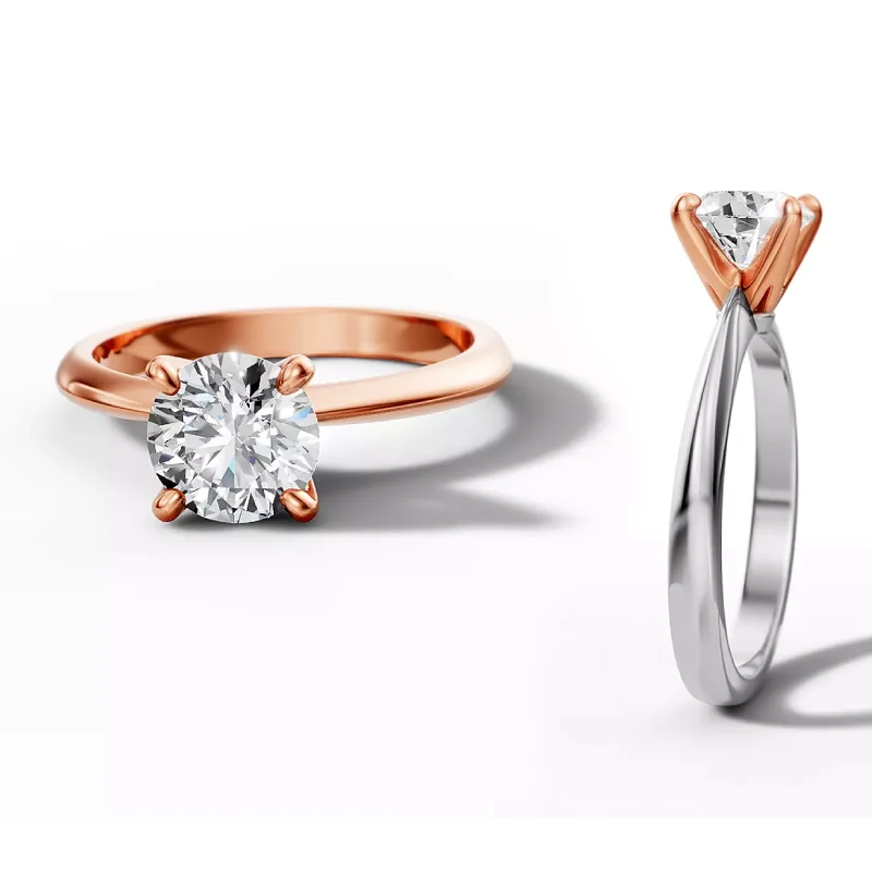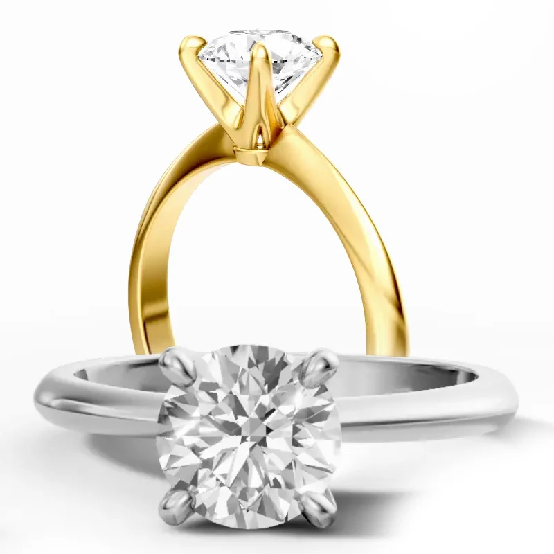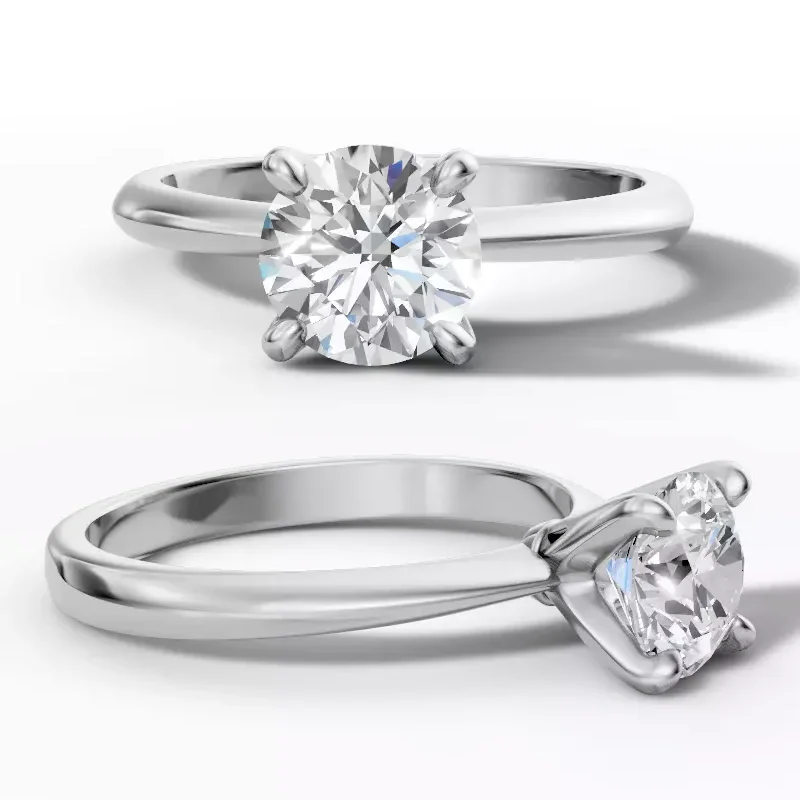 טבעת יהלום דקה ועדינה. טבעת אירוסין סוליטר קלאסית שיבוץ 4 שיניים