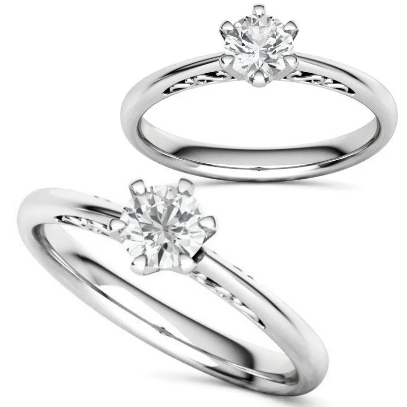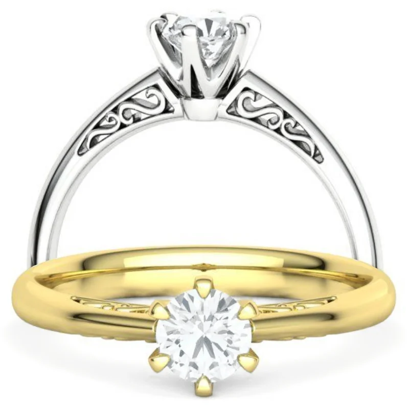 טבעת אירוסין וינטאג' חריטה אומנותית סוליטר קלאסית עם עיטורים בצד