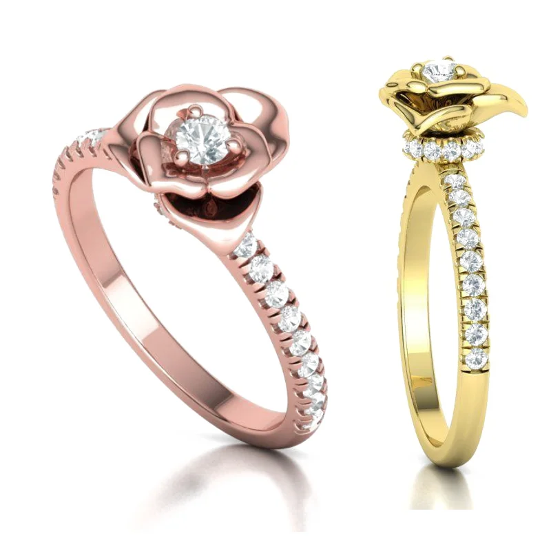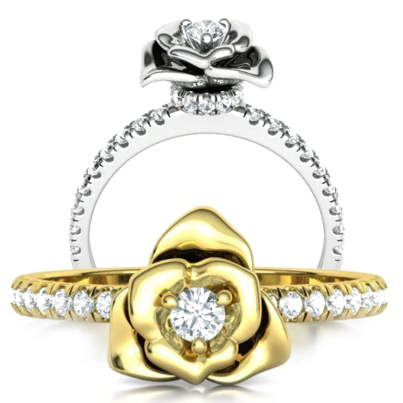 טבעת יהלום בצורת פרח עם עלי כותרת