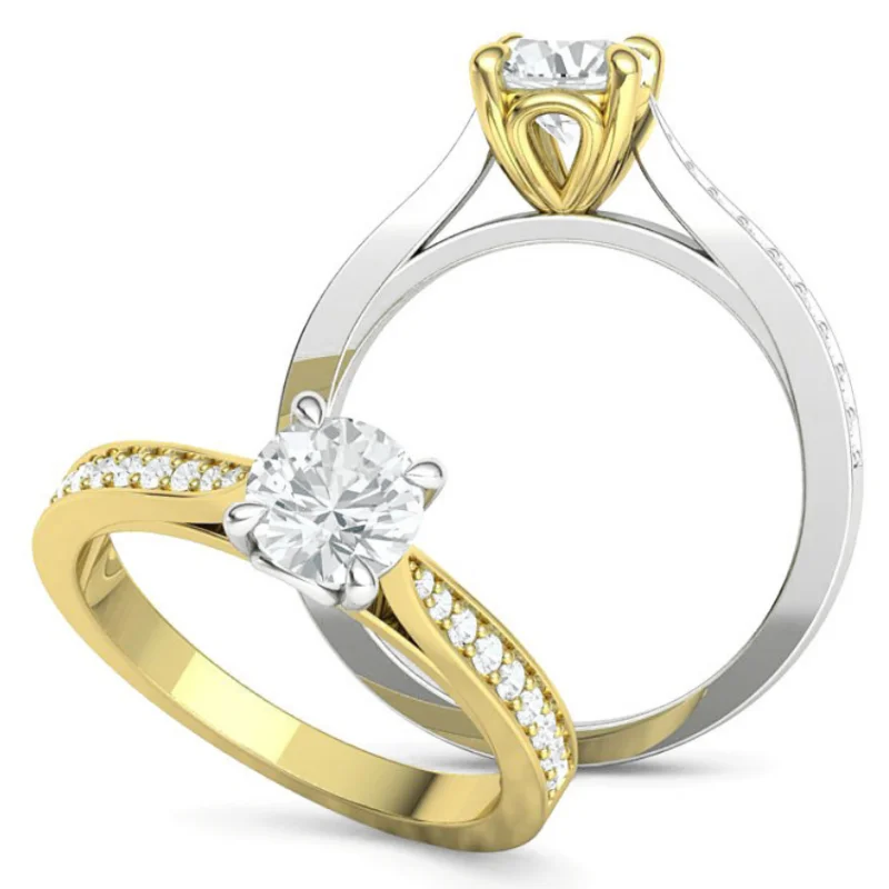 גודל היהלום המרכזי בתמונה 6 מ"מ במשקל משוער 0.85 קראט (אפשר לשנות את חיתוך וגודל האבן המרכזית)