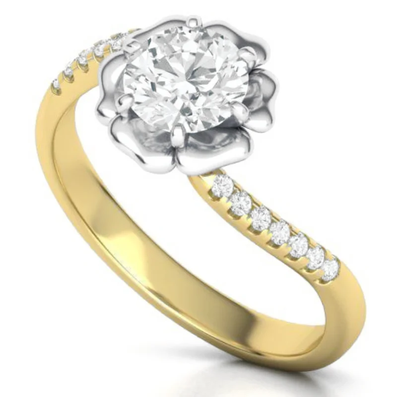 טבעת יהלומים פרח שושנה סוליטר מיוחדת גדולה ניתן לשלב 2 צבעים של זהב