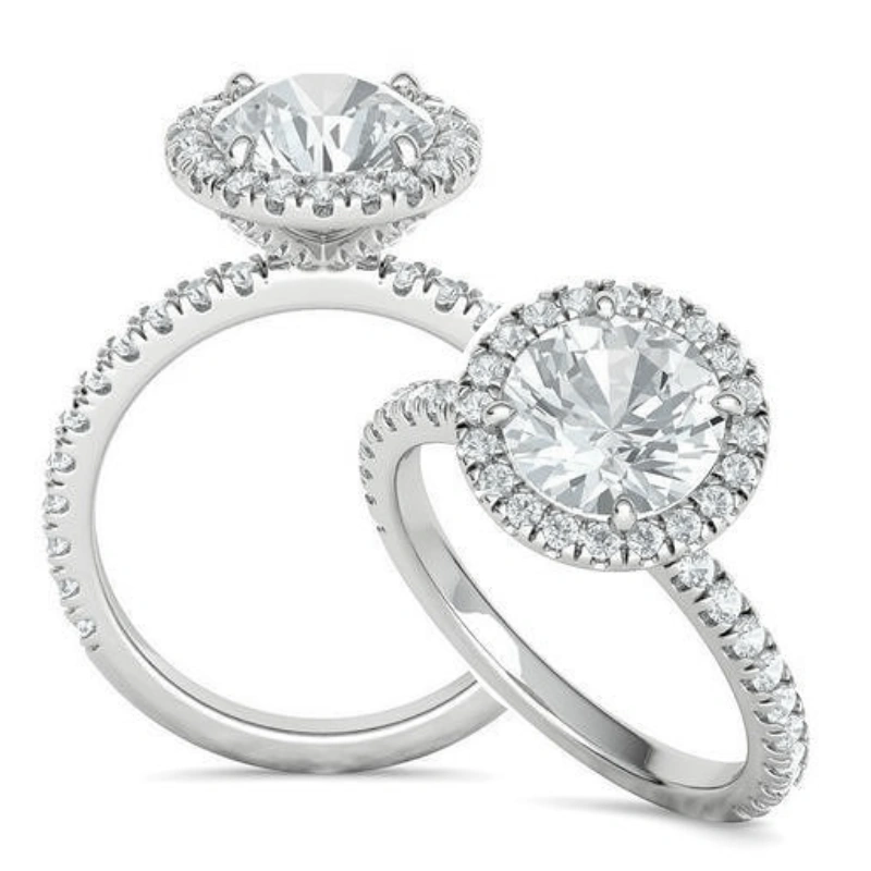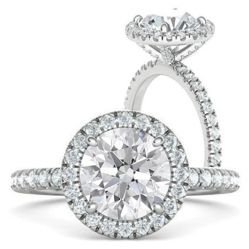 טבעת אירוסין 2 קראט (אבן 8 מ"מ) בגסנון HALO שורת יהלומים מסביב לאבן המרכזית וגם מתחת לראש הטבעת