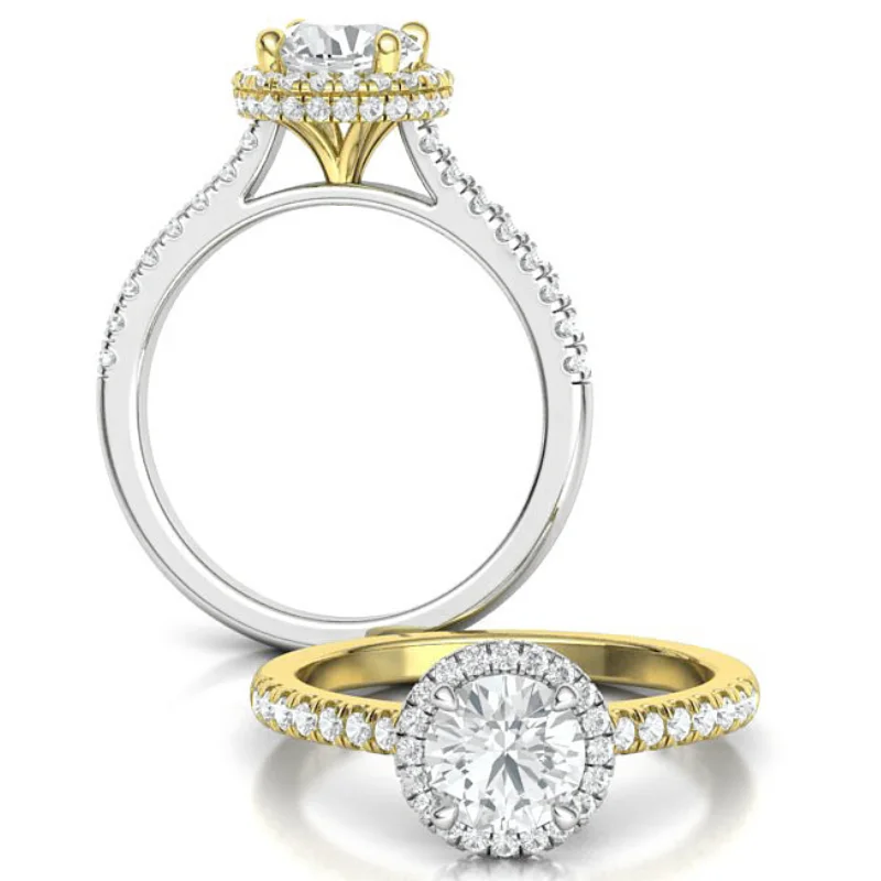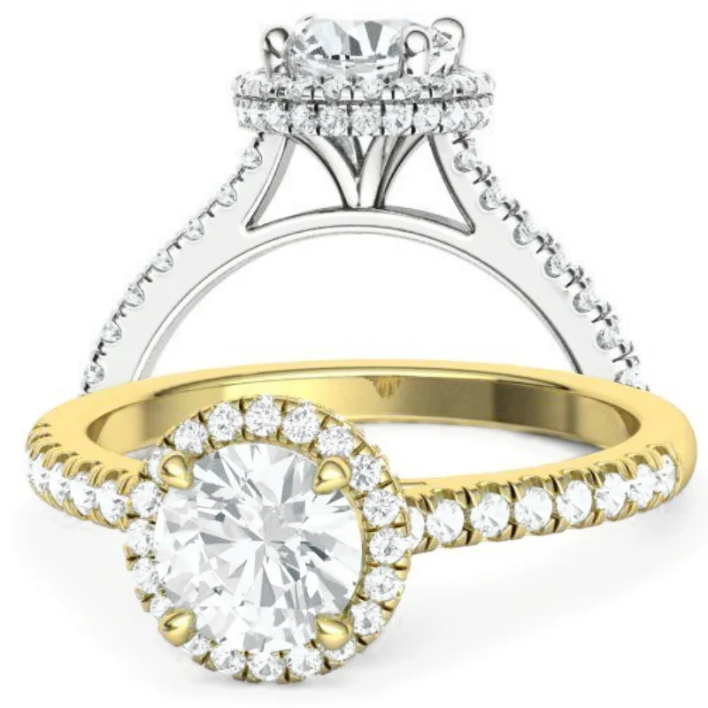 טבעת יהלום גדולה משובצת היילו פאווה גלוי (עליון) ונסתר (צידי)