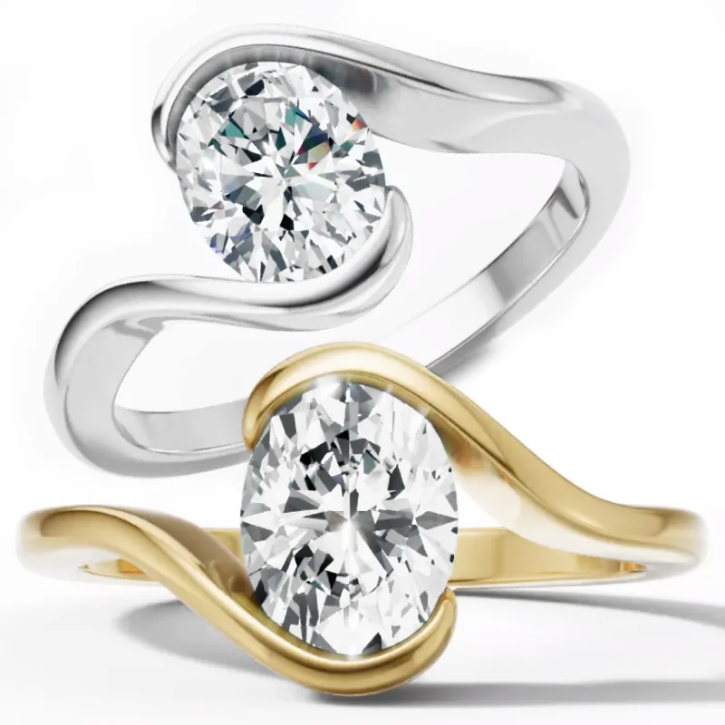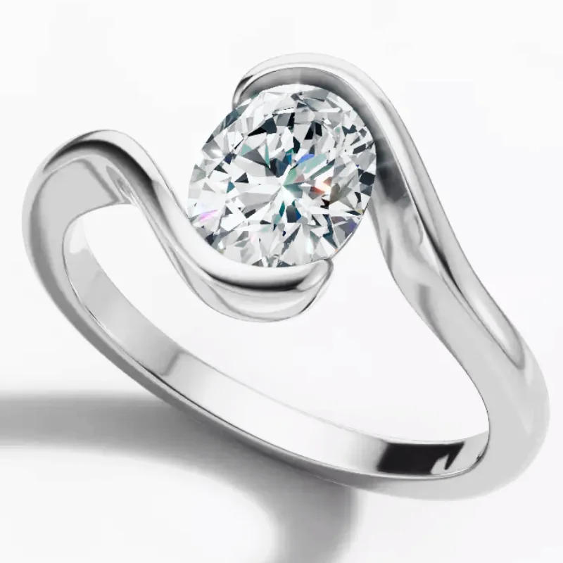 טבעת אירוסין יהלום אובלי שיבוץ לחץ סוליטר טויסט