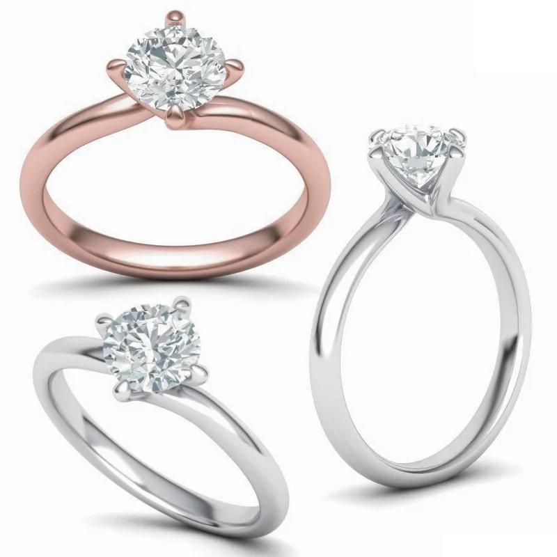 טבעת יהלום סוליטר חלקה טויסט עדין שיבוץ 4 שיניים קלאסי