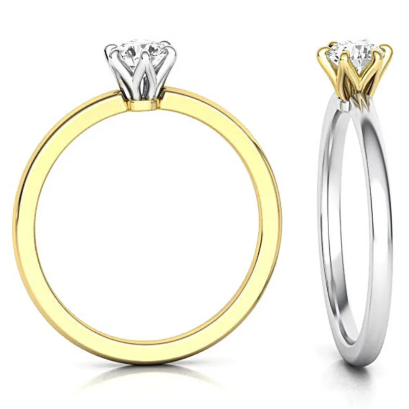 טבעת אירוסין 2 צבעי זהב צהוב ולבן. ניתן לשלב גם זהב בצבע רוז (אדום)